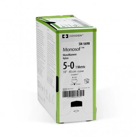 Le Monosof 5/0 Nylon CT est un fil de suture chirurgical non résorbable monofilament, fabriqué en polyamide (nylon).